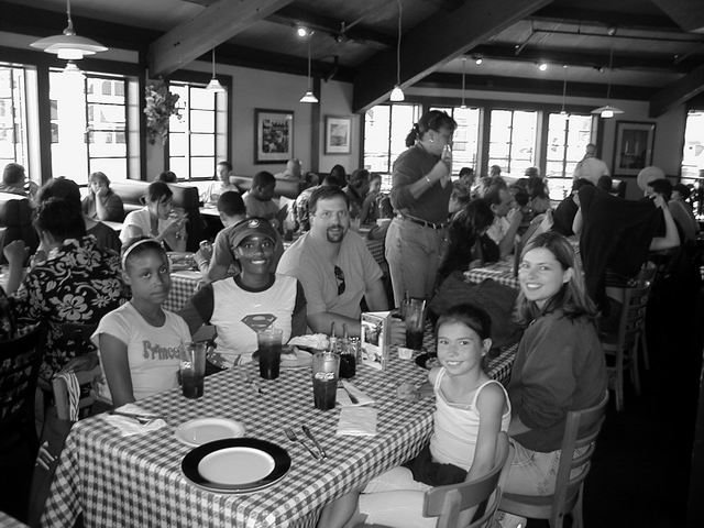 We stopped at Pier 39 to eat at "North Beach Pizza", the waiter was great, but kept hitting the wrong button on the camera, he changed it to B&W instead of taking the picture.