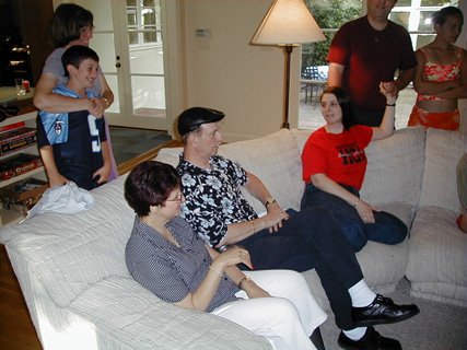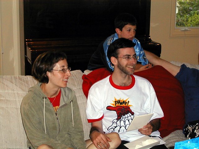 Scott's Dad watching him open gifts