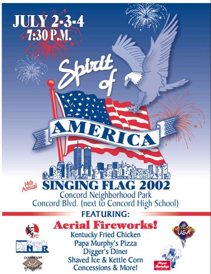 On Tuesday night July 2, 2002 several of us met up to watch the "Singing Flag" performance in one of Concord's nieghborhood parks. This years event was attended by The Davis Family, The Press Family, John Cannata & Mary Kathryn along with myself.
