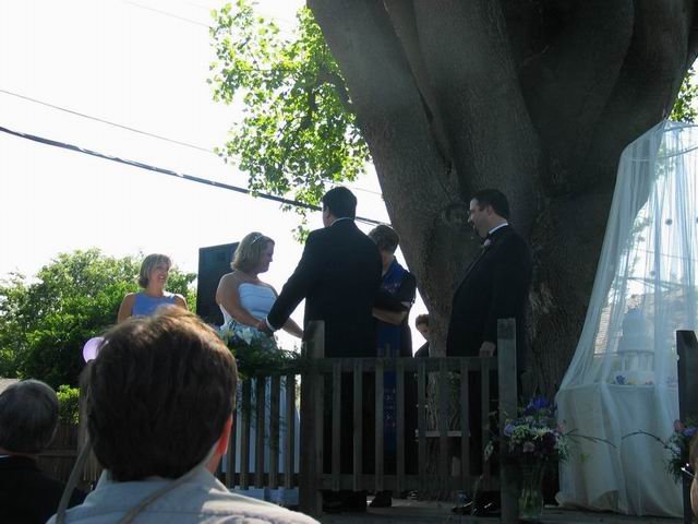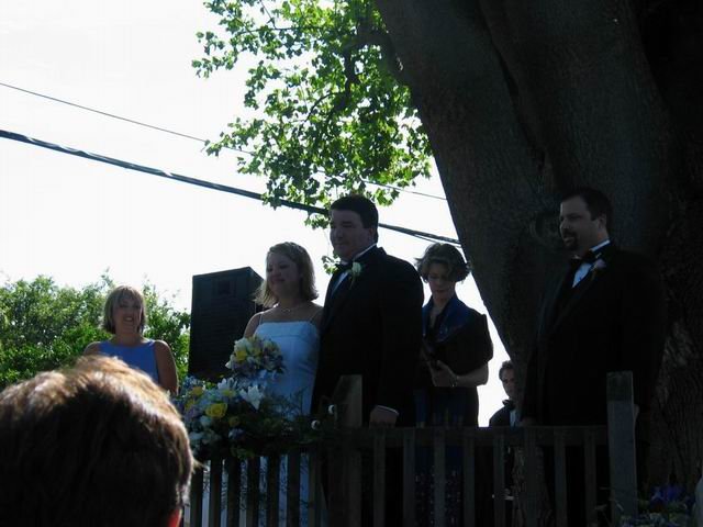Lee & Kollette exchanging vows, her sister Kari is the bridesmaid