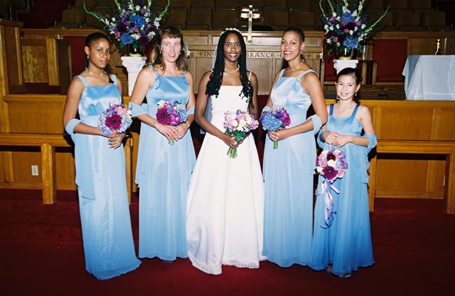 The full bridal party: Jeff Hirasawa, Amber Andres, Sheryl Spurr, Jeanna Henderson, Amanda Ratner, Lee Wilkinson, Christine Chilcott, Kevin Davis