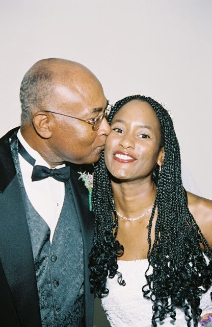 Yvonne getting a kiss from her father just before the big moment.