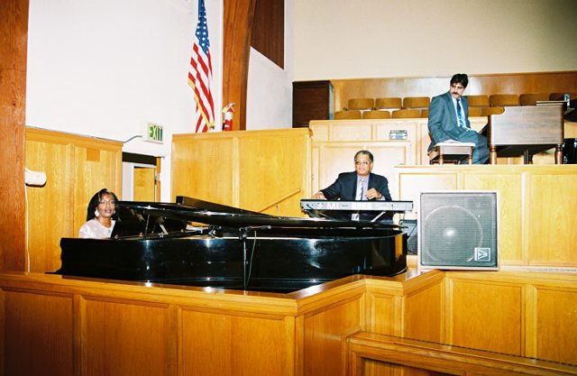 Karen and Gregory Cole on keyboards and piano, Thomas Albert on the organ.