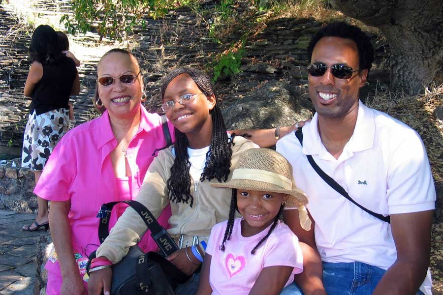 Pumpkin, Carly, Briana and Michael stay cool in the shade