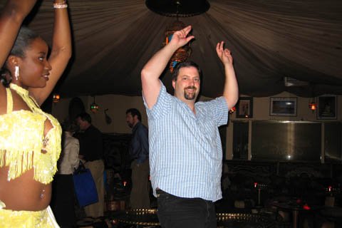 Our first belly dancer returns and picks me out of the crowd for a little "one on one" time
